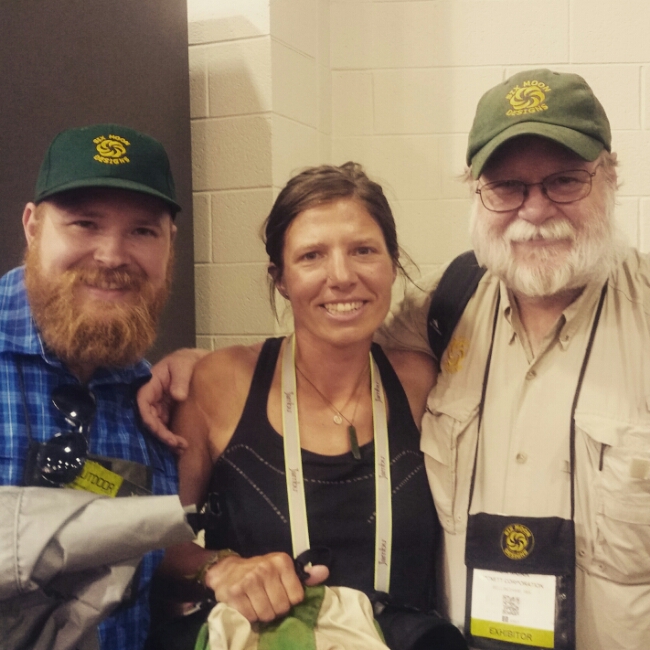 A lot of magic happens at the OR Show…we went to go see the Yonder Mountain String Band, I met amazing climber and photographer (and really nice guy) Jimmy Chin, got Scott Jurek (the speed record holder for a supported AT hike) to wear a hikertrash hat, saw my good friend Adryon from Bend, and brushed elbows with lots of amazing people on the floor of the show.