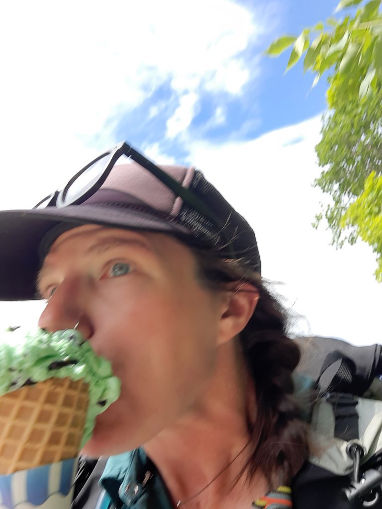 I rolled out of the park mid-afternoon and up to the Abol Bridge Store for a giant ice cream cone and bug spray. The bugs were out, and having been kind of caviler about them so far, was finding welts all over the place.