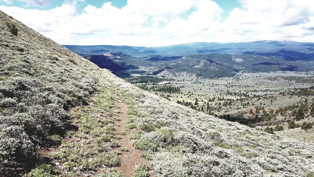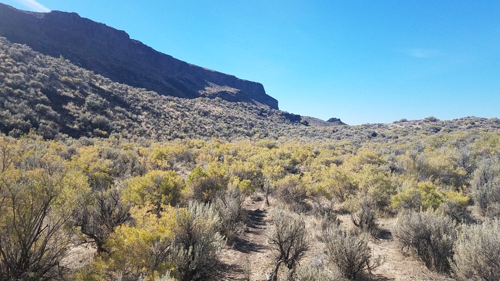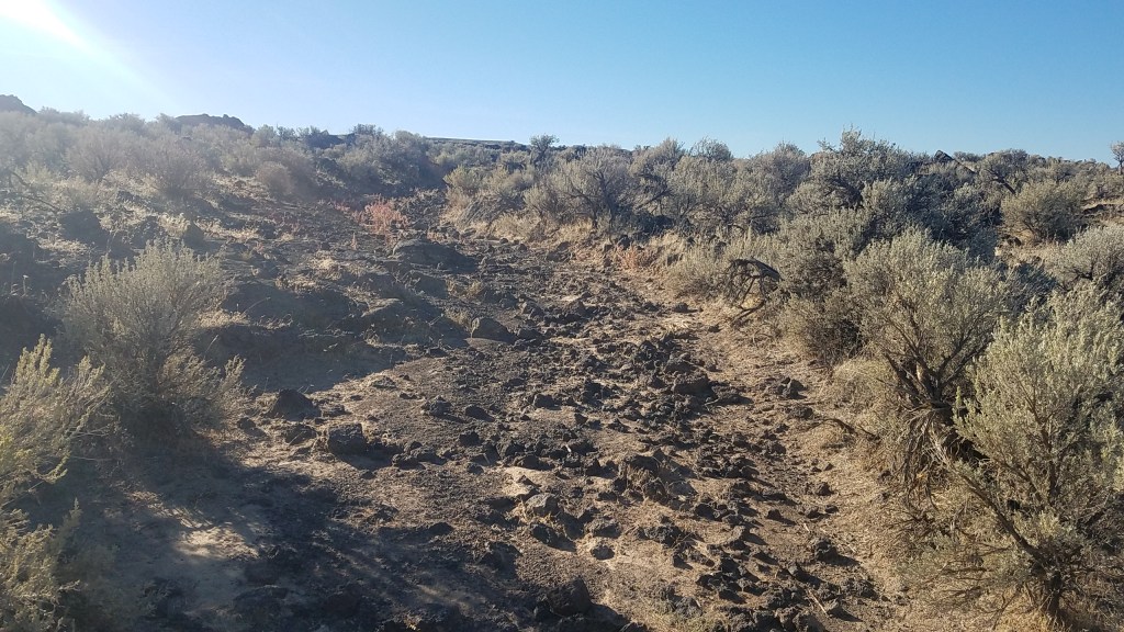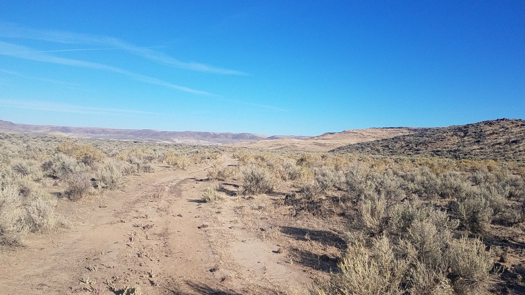 After scaling a hill, I was met with flatland. The only thing in sight was miles and miles of sagebrush. The level ground made it a much easier hike, but after about an hour into my journey, I picked up on what made this part of the trail difficult: keeping track of where you are going. Moving left and right to navigate the sagebrush, and without a mountain, river or highway as a reference point, it was hard to maintain my intended direction. More than once I glanced down at my GPS to learn I was headed in the opposite direction of where I wanted to go.