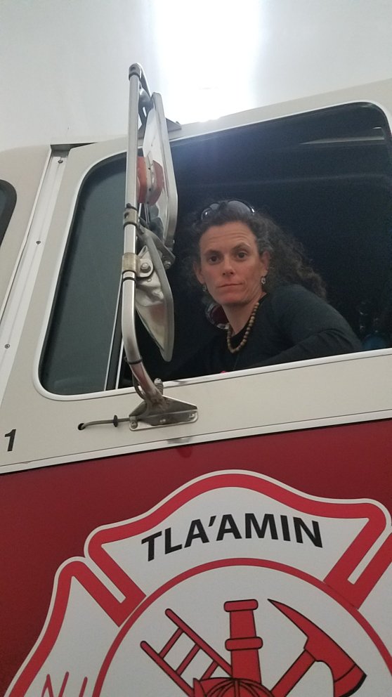 The rest of the day the two old friends caught up, we packed up our food, bought some last minute items, wolfed down an excellent fish dinner at her friend’s food truck, and walked the beach at nearby Tee sho som. Courtney worked as a volunteer firefighter in the community and also taught preschool there. We visited the firehouse and Nemo explored another career path.
