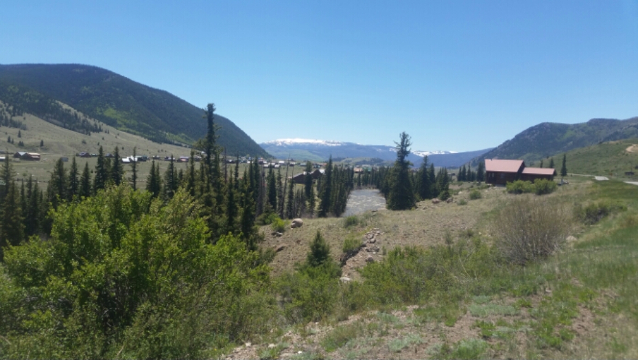 And after a few more hours I’m in town! What a pretty little place this is, all tucked in a canyon, the river is a deep clear blue, the mountains are rugged, yet decked out in their spring green. Lovely.